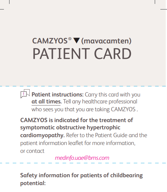 If you have any questions or concerns regarding CAMZYOS, please discuss them with your prescriber, doctor, pharmacist or any member of your healthcare team.